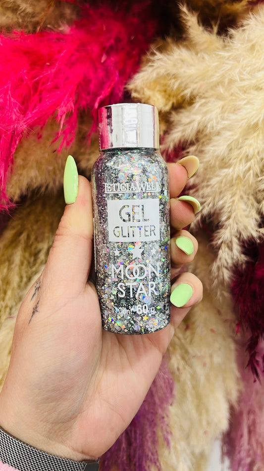 GEL GLITTER PARA CARA, CUERPO Y CABELLO