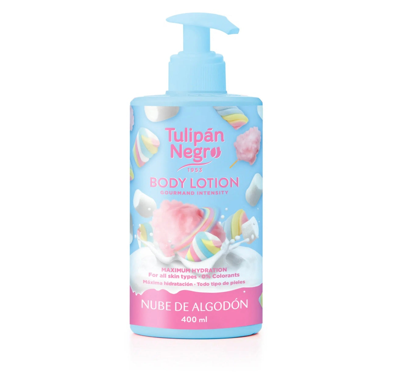 Loción corporal de Tulipán Negro con aroma a Nube de Algodón que hidrata y regenera la piel dejando una suavidad espectacular.